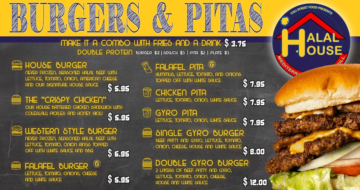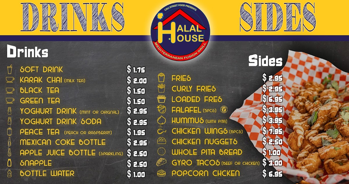 Halal House in Northridge offers a vibrant and diverse menu that masterfully blends Middle Eastern and American flavors, catering to a wide spectrum of tastes. The hallmark “Build Your Own Plate” lets you customize a generous bowl featuring all-natural chicken, gyro, or falafel, paired with fresh rice and crisp salad—perfectly balancing health and flavor. Fans of street food will appreciate their authentic hot dogs made with halal beef, and their creative sides like loaded fries topped with cheese, jalapeños, and a choice of gyro or chicken. The falafel is a standout, crispy outside and tender inside, delighting vegetarians and meat-eaters alike. Their juicy burgers and homemade chicken wings further highlight their commitment to quality. With reasonable prices and friendly service, Halal House turns every meal into a flavorful, satisfying experience that keeps customers coming back for more.